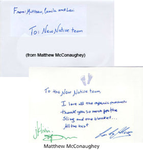 After receiving the basket, Sharon Stone contacted New Native Inc. to order additional baby carriers in navy, black and khaki.