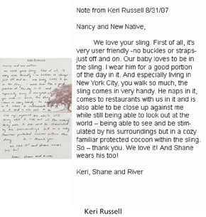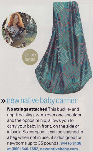 Dear NancyI Want to say a huge thank you for the amazing products you sent…. Theyare fantastic and that was so very generous of you. My daughter lovesthe new native children's sling as she now can hold her baby while mamaholds hers.