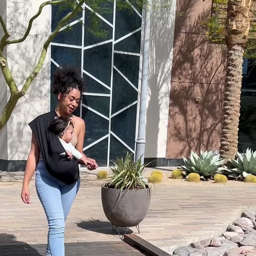 The New Native® Baby Carrier's sleek hassle-free design is free of buckles, straps, and rings. Our carrier provides ultimate comfort and ease of mobility for you and your baby